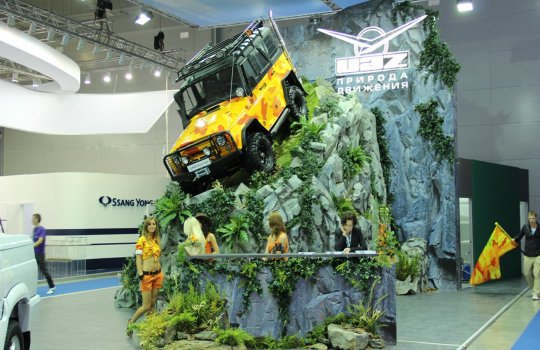 Как видим, существует большое количество видов подиумов для транспортных средств. В настоящее время особую популярность завоёвывают диджитал-конструкции, воспроизводящие видеорекламу за счет светодиодных панелей.